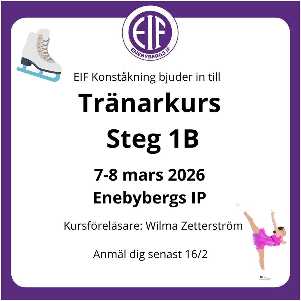 Enebybergs IF Konståkning bjuder in till Tränarkurs Steg 1A den 11-12 oktober 2025 på Enebybergs IP.